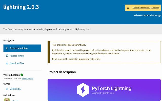 The popular PyPI package lightning — the deep learning framework used to train, deploy, and ship AI products has been compromised in an active supply chain attack.