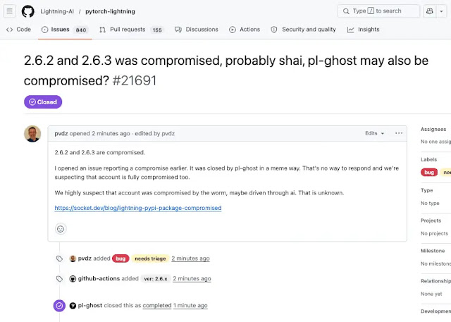 Community member reports surfaced in Lightning-AI’s GitHub repository under issue #21689, titled “Possible supply chain attack on version 2.6.3.”
